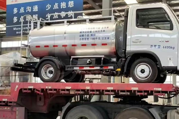 3噸牛奶運輸車+立式1噸制冷罐出貨